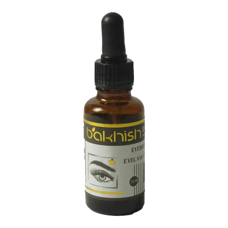 سرم تقویت کننده و رویش مجدد ابرو و مژه باخیش با ظرف 30 میل با درب قطره چکان دار به همراه میل قطره و جعبه و بروشور.